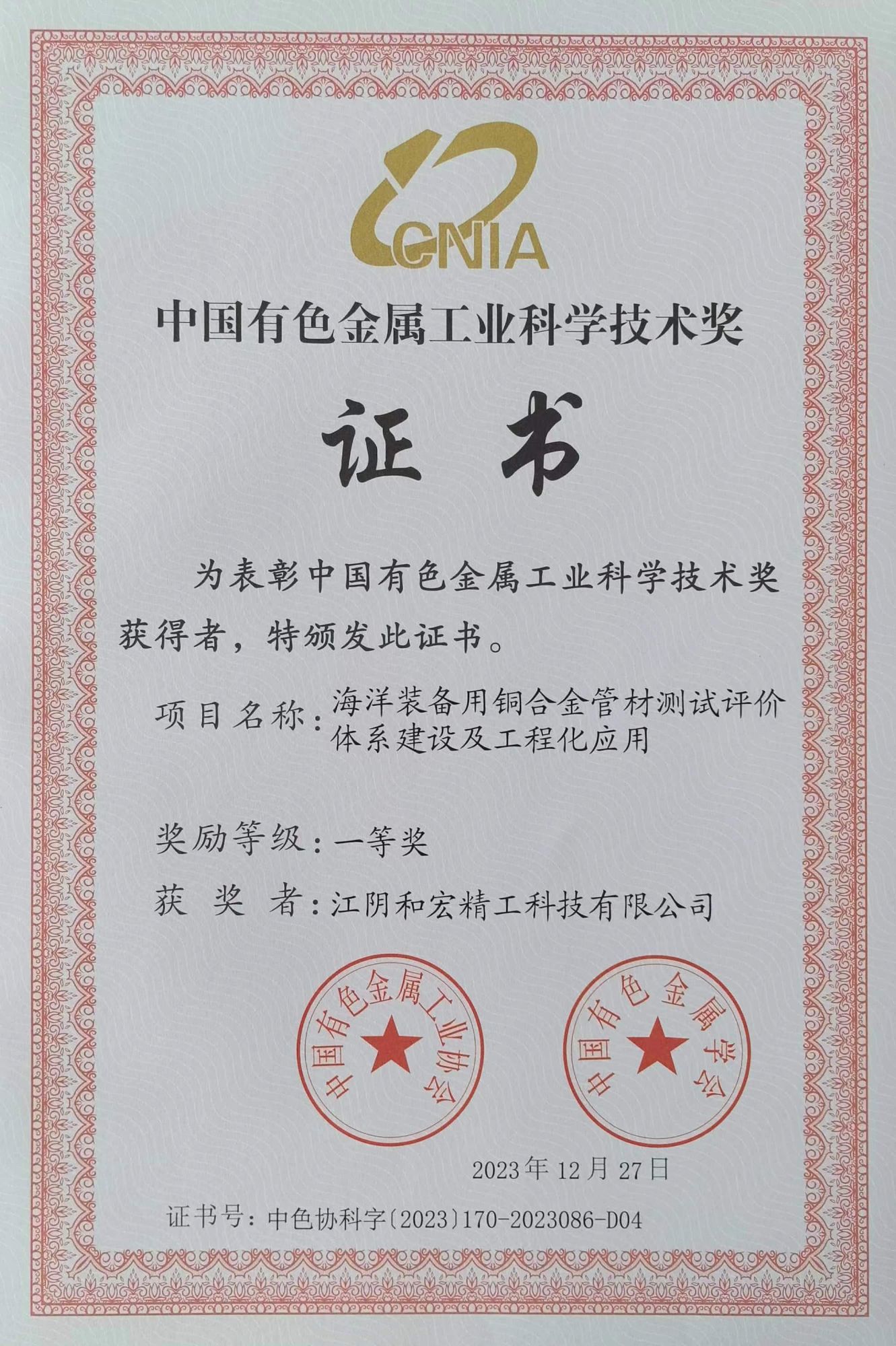 和宏精工喜獲中國(guó)有色金屬工業(yè)科學(xué)技術(shù)獎(jiǎng)一等獎(jiǎng)!